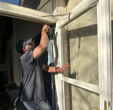 After a successful delivery and assembly of a mattress bed frame and headboard, we noticed the customers storm door hinge was stripped. Amazon sells an amazing product that will securely re-anchor the screws. Amazon.com: Sia Wood Anchor-10 Pack: Industrial & Scientific
